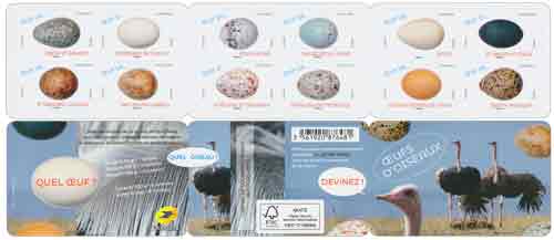 | Description | Émission d'un carnet de 12 TP LV illustrés par des oeufs d’oiseaux…devinez lesquels ! |