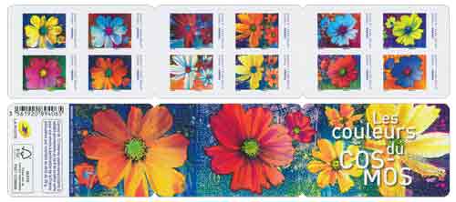 | Description | Carnet de 12 timbres-poste illustré par les couleurs des fleurs "Cosmos" |