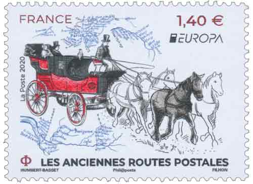 | Description | Émission d' un timbre de la série Europa sur le thème « LES ANCIENNES ROUTES POSTALES ». |