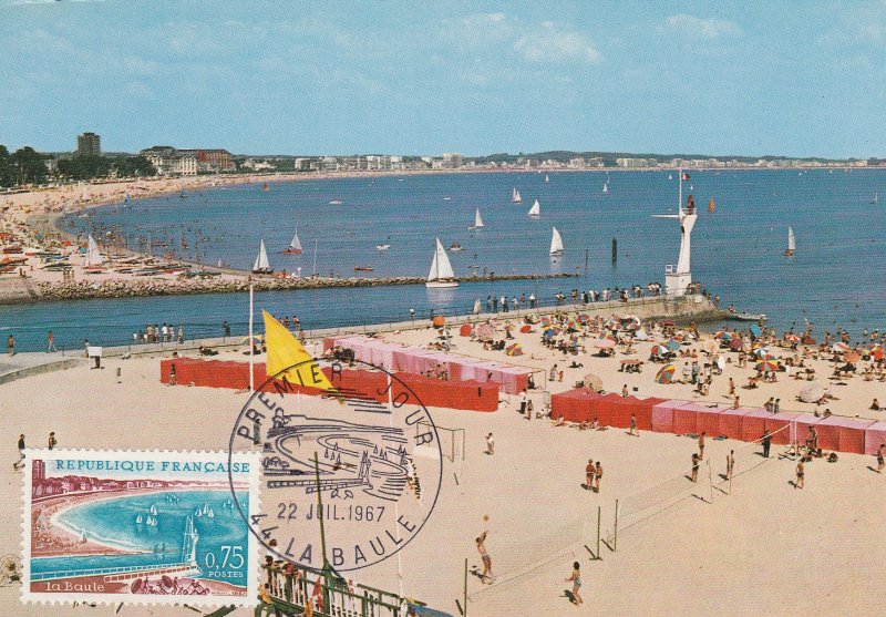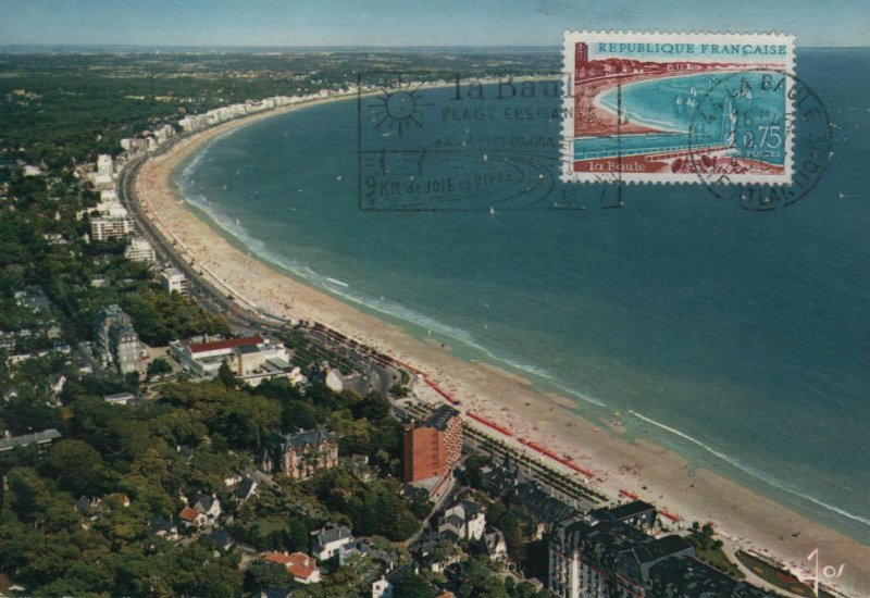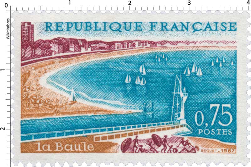 | Commentaire | Tu sais que La Baule, ce bijou de la côte Atlantique, était autrefois un désert de sable balayé par les vents ? En 1865, un certain Pol de Courcy parlait carrément d’un endroit « silencieux, solitaire et stérile ». Fastoche à croire quand on pense à des dunes, mais quand on voit aujourd’hui les 10 kilomètres de plage ourlés de pins, de villas et de palaces… on se dit que les choses ont bien tourné. Tout a changé avec une idée toute bête mais brillante : planter des pins pour fixer les dunes. Bingo. Puis, quand la ligne de chemin de fer est arrivée à la fin du XIXe, c’était parti. Les promoteurs flairent le bon coup, les élégantes débarquent en été, les tennis et les terrains de golf se multiplient – et boum, voilà une station balnéaire qui tape dans le haut du panier. Aujourd’hui encore, y a un truc presque italiano chic dans l’air. Les hôtels sont classes, les clubs huppés, et même les pins semblent bien élevés. Ce qui est fou, c’est que La Baule a su jouer sur tous les tableaux. Tu veux du sport ? Yachting, golf, équitation, aéronautique, rallye. Tu préfères les bains de foule raffinés ? Festivals, théâtre, soirées mondaines. Et l’hiver alors ? Pas un souci. Entre le climat doux, l’air marin chargé d’iode, et les projets de Palais des Congrès… elle vise aussi les pros, les colloques et les grandes réunions d'affaires. Bref, la mer, mais en costume-cravate aussi. Fun fact : en été, la population grimpe de 15 000 à 160 000 habitants. C’est comme si toute une petite ville se transformait en décor de carte postale. Et ce n’est pas fini. La Baule ne cesse de se réinventer. C’est peut-être ça, sa vraie force : conjuguer nature et élégance sans jamais devenir prétentieuse. WikiTimbres |