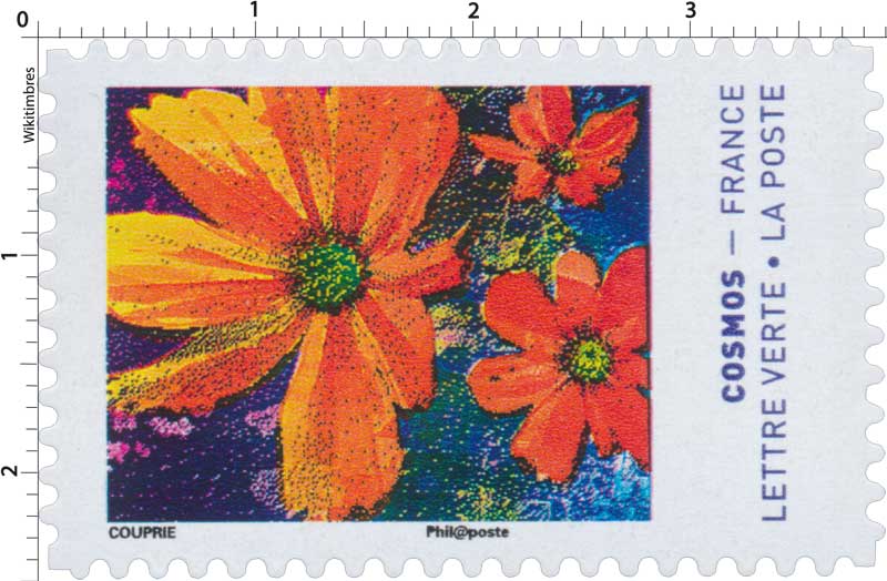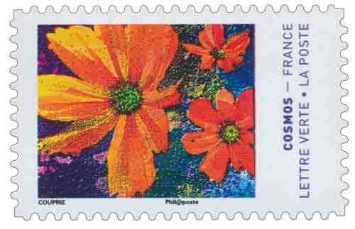 | Description | Provenant du carnet de 12 timbres-poste illustré par les couleurs des fleurs "Cosmos" |