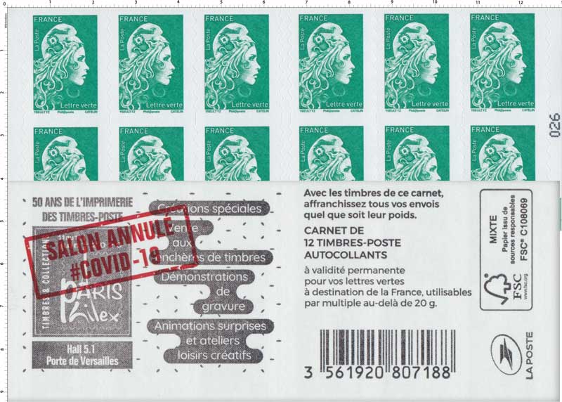 | Description | Carnet de 12 timbres lettre verte |