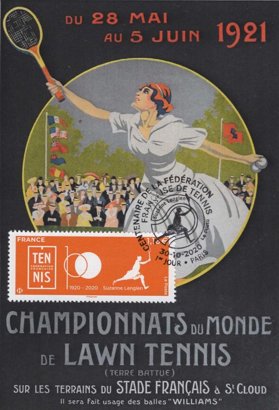 | Description | Émission d'un timbre pour le centenaire de la Fédération Française de Tennis, illustrée par la première star internationale du tennis féminin, née à Paris |