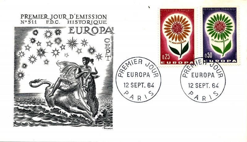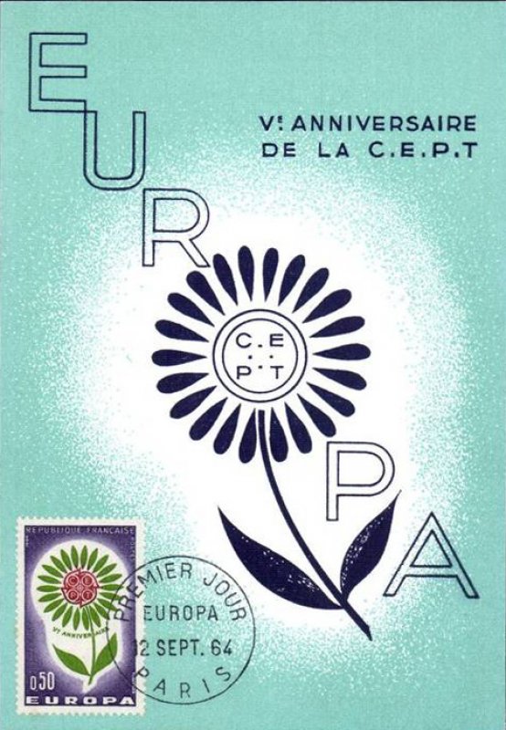 | Commentaire | Quand on parle de l'Europe, on pense souvent aux traités, aux drapeaux bleus et à tout ce qui semble un peu... administratif. Et pourtant, en 1964, l'Europe a choisi de parler d’elle-même autrement : par une fleur ! Cette année-là, la France, avec plein d'autres pays européens, émet deux timbres "Europa" sous la houlette de la CEPT (la fameuse Conférence Européenne des Postes et Télécommunications). L’artiste Georges Betemps – un Français, cocorico ! – remporte un concours ouvert à plusieurs nations pour dessiner le visuel officiel. Résultat ? Une fleur colorée, dont les vingt-deux pétales symbolisent chacun une administration postale différente. Euh… et c’est pas juste joli : chaque pétale veut dire "on avance ensemble", une sorte de déclaration d’amour à la coopération européenne. (<!-- franchement, c’est beau, non ? -->) Il semble que depuis la dernière émission en 1963, trois nouveaux membres aient rejoint la danse : Chypre, Monaco et le Liechtenstein. La fleur s’agrandit, et ça fait plaisir. À noter quand même, petite curiosité : le Liechtenstein, fidèle à son côté indépendant, participe à l'émission "Europa"... mais avec un sujet différent ! On pourrait dire que ce timbre est comme une petite main tendue, discrète mais forte, entre des pays qui, pas si longtemps avant, étaient encore parfois en guerre. Pas mal pour une fleur imprimée sur 22 millimètres de haut, non ? WikiTimbres |