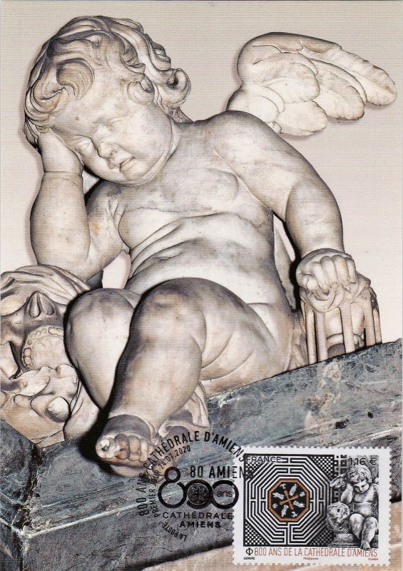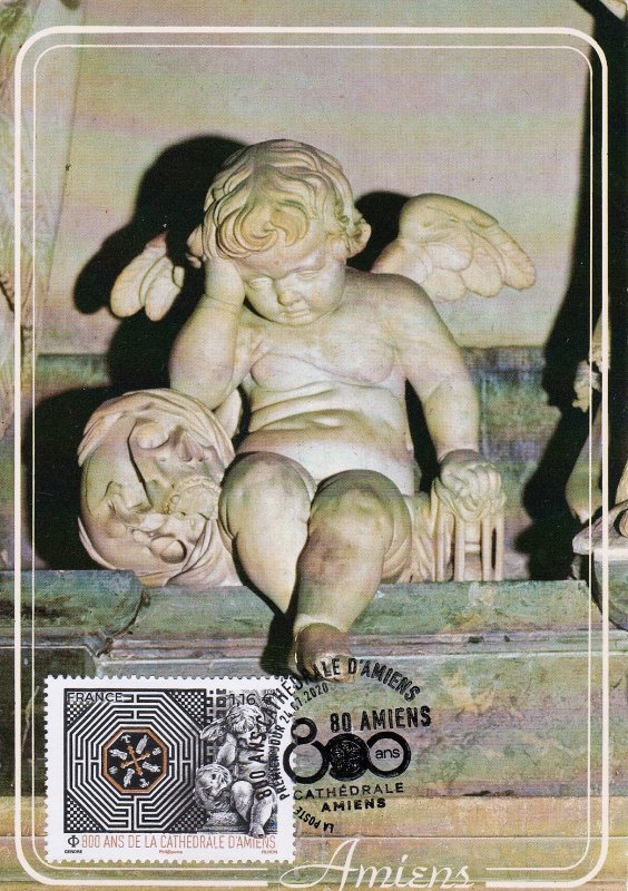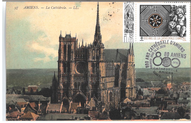 | Commentaire | Premier jour le 07/05/2020 Du 24 nov. 2019 au 22 nov. 2020, la Cathédrale Notre-Dame d’Amiens (80-Somme), surnommée "La Bible de pierre", fête ses huit siècles d'existence. C'est le plus vaste édifice gothique de France, une œuvre élégante et légère dont la haute technicité défie les lois de la pesanteur. Classée Monument Historique depuis 1862, elle et inscrite au patrimoine mondial de l’Unesco depuis 1981. Il y a 800 ans des milliers d’hommes et des centaines de corps de métiers ont construit cette cathédrale dans un temps record. Des bataillons de tailleurs de pierres, maçons, charpentiers, forgerons, sculpteurs et de verriers ultra-qualifiés ont développé un art de travailler ensemble. En cent cinquante ans, plus de 80 cathédrales jaillissent de terre. Elles ont toutes un point commun : leur démesure. Bâtie sur une ancienne cathédrale romane, c'est en 1220 que la première pierre de fondation de la cathédrale Notre-Dame fut posée par l'Evêque Evrard de Fouilloy (né vers 1145 - évêque d'Amiens de 1211 à nov.1222). En savoir plus sur Wikipédia : Cathédrale Notre-Dame d'Amiens |