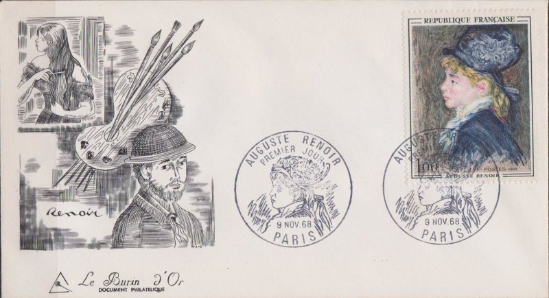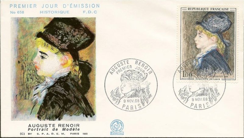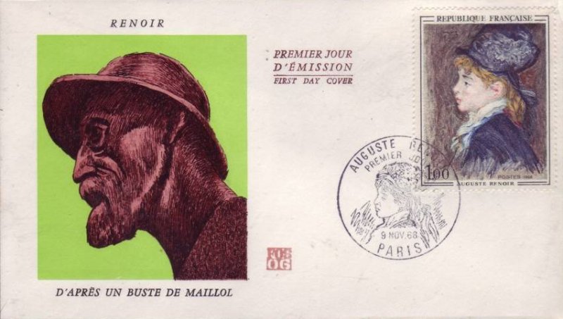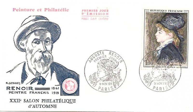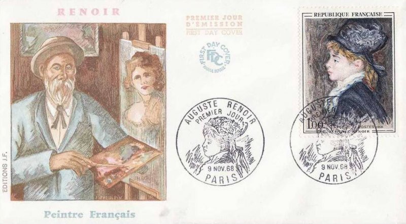 | Commentaire | Il y a des artistes qui peignent le monde. D'autres, comme Renoir, peignent la lumière qu’il renvoie. Ce qui frappe chez lui, ce n’est pas tant le style — même si bon, il est l’un des piliers de l’impressionnisme — que cette façon de rendre les choses douces, vibrantes, vivantes. Un visage, une fleur, un corps... tout respire. C’est comme si la couleur passait avant le trait, comme si la joie passait avant tout. Et pourtant, tout avait commencé à Limoges, dans une fabrique de porcelaines. Il avait 13 ans, dessinait des fleurs sur des assiettes, et déjà cette obsession du détail. Plus tard, à Paris, il entre aux Beaux-Arts. Mais ce sont surtout les rencontres qui changent tout : Monet, Pissarro, Sisley, des amis de pinceau avec qui il part peindre en forêt. Il y a là une énergie folle, une envie d’attraper la lumière à la volée. L’impressionnisme, à ce moment-là, c’est presque un cri de liberté. Mais Renoir, lui, veut plus. Il part en Italie, regarde Raphaël, revient avec une soif de "forme", de contour — on parle alors de sa "période Ingres". Puis il retrouve Gabrielle, sa nièce par alliance, muse, modèle, complice. C’est elle qu’on devine derrière bien des toiles pleines de tendresse. Et même lorsque la maladie le rattrape, qu’il ne peut plus marcher ni tenir un pinceau... il s’entête. On lui attache le pinceau à la main. Il peint assis, parfois presque allongé. Jusqu’au dernier jour. Renoir n’a jamais peint la douleur, même s’il la connaissait. Il a choisi de montrer la beauté. Et il l’a fait avec une telle délicatesse qu’on se surprend, encore aujourd’hui, à sourire sans trop savoir pourquoi. WikiTimbres |