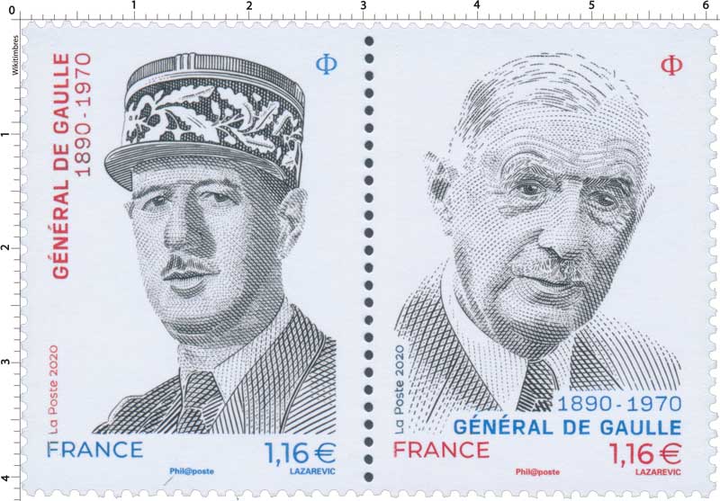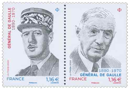 | Commentaire | La Poste rend hommage au Général de Gaulle en émettant un diptyque de timbres à l’occasion du 130e anniversaire de sa naissance, du 50e anniversaire de sa disparition et des 80 ans de l’Appel du 18 juin. Une mise à l’honneur du « dernier grand homme qu’ait hanté La France » comme le décrivait André Malraux Visuel : Général de Gaulle, chef des Français libres et organisateur de la Résistance sur le territoire français depuis Londres en 1940. Charles de Gaule durant la partie de sa vie consacrée à assumer les pouvoirs de la République (ministre, puis président de 1958 à 1969 - Ve République), avant de se retirer à Colombey les Deux Églises et d'écrire ses mémoires. En savoir plus sur Wikipédia : Charles de Gaulle |