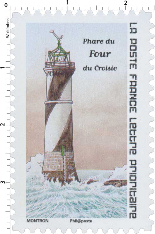 | Commentaire | Phare du Four du Croisic ou Phare du plateau du Four (il est situé au large, à l'Ouest du Croisic Loire-Atlantique. 44). - Il s'agit du premier phare en mer construit en France et représente, à ce titre, le prototype d'une typologie. Il est bâti sur un haut-fond rocheux de l'océan Atlantique, le plateau du Four (à 4 milles nautiques de la côte), sa construction par les ingénieurs Plantier et Rapatel a débuté en 1816 et s'acheva en 1821 pour une mise en service en janvier 1822. La tour cylindrique est construite en maçonnerie de pierre de taille de granit. La hauteur initiale était de 17 m, mais il a été exhaussé de 6 m en 1846. Il a également bénéficié de la mise en place d'un appareil catadioptrique. L'année 1886 voit l'achèvement de la jetée d'accès. Le phare est divisé en 3 étages, et décoré de menuiserie. En 1832 son feu devient à éclat blanc et passe de 30 secondes à 3 secondes ; puis en 1983 il passe à 5 secondes. Il est doté d'une optique tournante, éclairée par une lampe halogène de 90 W, sa portée est de 19 milles nautiques Il est automatisé depuis 1983, est télécontrôlé et n'est plus gardienné. Son motif à spirales permet de servir d'amer. En savoir plus sur Wikipédia : Phare du plateau du Four |