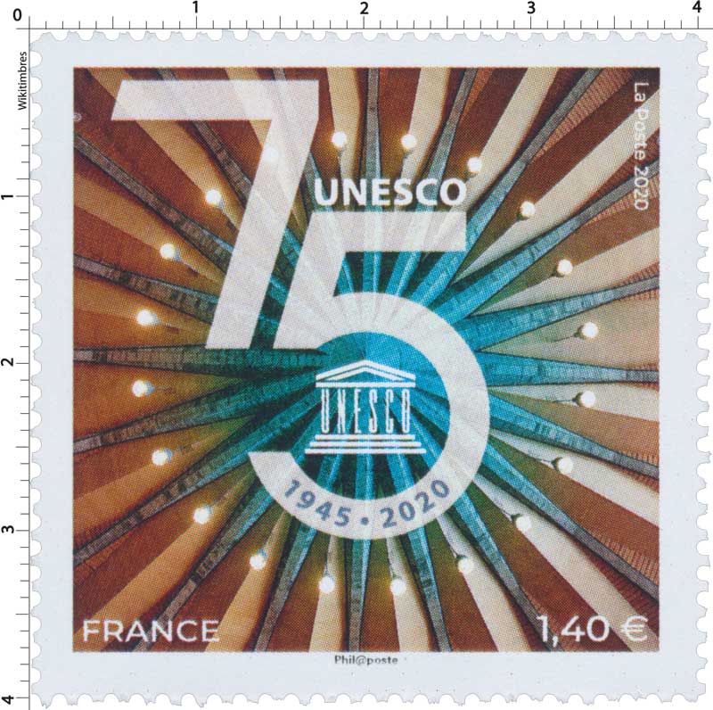 | Description | Émission d'un timbre de service pour affranchir les courriers au départ de l’UNESCO : 2020 - 75e anniversaire de l’Organisation des Nations Unies pour l’Éducation, la Science et la Culture |