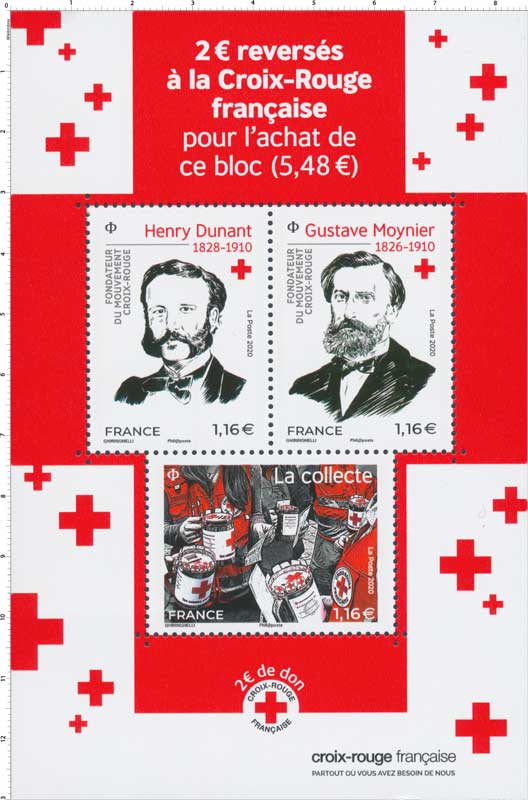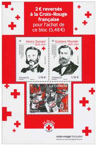 | Description | Émission d'un bloc de 3 timbres à l’effigie d’Henry Dunant et Gustave Moynier et d’un moment clé : la collecte |