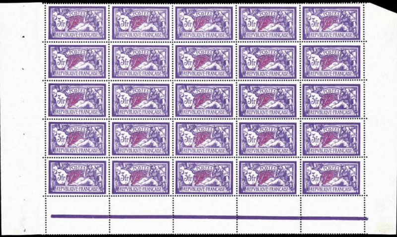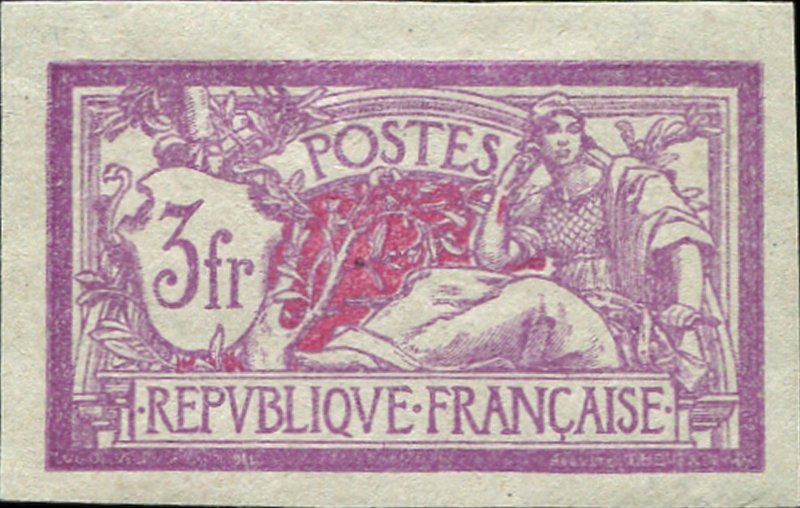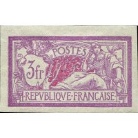 | Commentaire | Émis le 20 août 1927 et retiré le 17 novembre 1930, le 3 francs Merson (YT 240) appartient à la dernière génération des timbres d’usage courant au type Merson, série prestigieuse inaugurée en 1900 et réputée pour son élégance graphique. Cette valeur faciale élevée était destinée aux affranchissements lourds, recommandés ou internationaux, à une époque où les tarifs postaux connaissaient une inflation constante. Conçu par Luc-Olivier Merson et gravé dans la tradition classique française, ce timbre se distingue par sa composition majestueuse : La République assise, gardienne de la Paix, entourée d’attributs symboliques. Sa bicoloration lilas et carmin, obtenue par impression typographique, fait partie des combinaisons les plus raffinées de la série, avec des contrastes parfois variables selon les tirages, un point d’attention pour les spécialistes. Son grand format 40 × 24 mm et sa dentelure 13½ × 14 sont caractéristiques du type Merson, dont les dimensions dépassaient largement celles des autres timbres d’usage courant. Imprimé en feuille de 75 exemplaires, il fait partie des rares timbres français de grand module produits en typographie à cette époque. Bien que son tirage exact ne soit pas documenté, sa valeur marchande élevée en neuf témoigne d’une disponibilité réduite et d’un usage postal relativement limité, contrairement aux petites valeurs plus courantes. En oblitéré, il reste accessible, mais les exemplaires bien centrés et correctement frappés demeurent recherchés. Ce 3 F lilas et carmin représente un jalon essentiel pour toute collection avancée consacrée au type Merson, l’un des ensembles les plus emblématiques de la philatélie française.