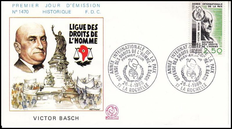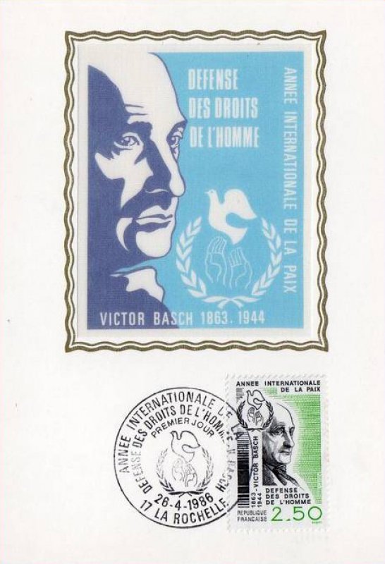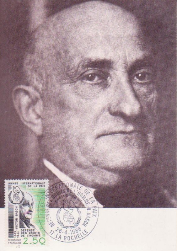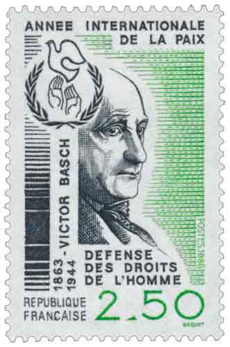 | Description | Année internationale de la Paix. Victor Basch (1863-1944), philosophe et universitaire français d'origine hongroise, cofondateur et président de la Ligue des Droits de l'Homme.(prof université de Nancy) |