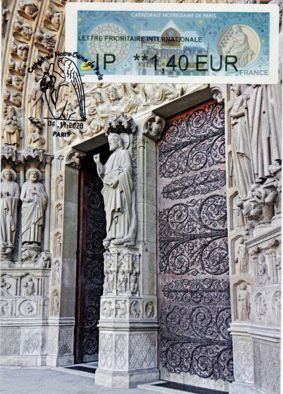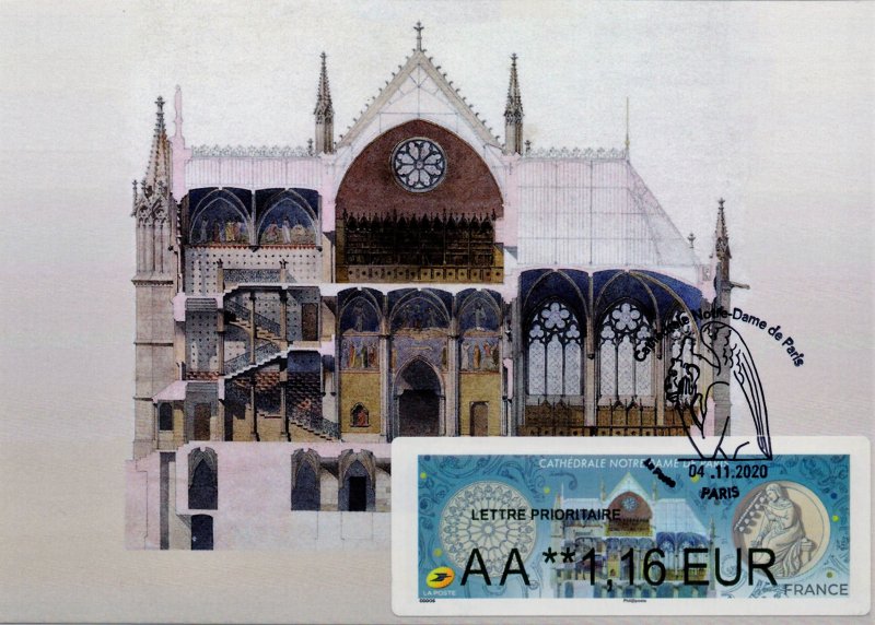 | Commentaire | Emission de 8 000 packs de 4 LISA Visuel : à gauche : dessin de la rose Sud de la Cathédrale Notre-Dame de Paris, par Germain Boffrand (1667-1754) en 1725. (plume et encre de chine) © BnF. - au centre : coupe longitudinale de la sacristie projetée © NDP - aquarelle (634 x 900) Eugène-Emmanuel Viollet-le-Duc (1814-1879) - musée de Charenton-le-Pont, Médiathèque de l'Architecture et du Patrimoine - à droite : sur la partie basse du trumeau du portail du Jugement dernier (façade occidentale - Ouest), remonté au XIXe siècle, sous Viollet-le-Duc ; celui-ci bénéficie de 6 arts libéraux en médaillons, avec à gauche : la géométrie, la dialectique et la théologie et à droite : l'astronomie, la grammaire et la musique - qui fait tinter des clochettes, le tintinnabulum, avec un doigt métallique. - le médaillon Bridgeman © Pascal Lemaitre |