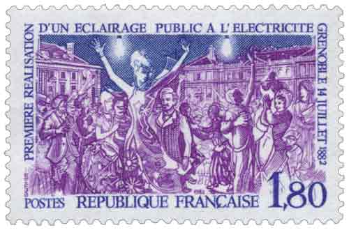 | Commentaire | Sur le timbre commémorant le centième anniversaire de cet événement, près de la jeune femme représentant allégoriquement la "fée électricité", on aperçoit l'artisan de ce succès, l'ingénieur Aristide Bergès (1833-1904). Originaire de l'Ariège, ancien élève de l'École centrale, fils de papetier et papetier lui même. En savoir plus sur Wikipédia : Aristide Bergès Ce timbre commémore le centenaire de la première réalisation d’un éclairage public électrique en France, inaugurée à Grenoble le 14 juillet 1882, événement qui marque une étape décisive dans l’histoire de l’industrialisation et de l’énergie. À la fin du XIXe siècle, l’électricité demeure une innovation encore expérimentale, et son usage public suscite autant d’espoirs que d’interrogations. L’initiative grenobloise se distingue par son ampleur et par la mise en œuvre concrète d’un système d’alimentation électrique continu, reposant sur une production hydroélectrique acheminée depuis Vizille vers la ville. Cette expérience, rendue possible par les travaux d’ingénieurs pionniers et par l’emploi de lampes à incandescence mises au point par Thomas Edison, dépasse le cadre des essais isolés menés jusque-là en Europe et ouvre la voie à une exploitation durable de l’électricité pour l’éclairage urbain. Le contexte régional joue un rôle essentiel, la présence de ressources hydrauliques abondantes dans les Alpes favorisant le développement de techniques nouvelles fondées sur l’énergie de l’eau, bientôt désignée sous le nom de « houille blanche ». L’émission de ce timbre en 1982 s’inscrit dans une politique commémorative attentive aux grandes réalisations scientifiques et techniques françaises, mettant en valeur les origines d’une transformation majeure de la vie quotidienne. En rappelant cet épisode fondateur, ce timbre souligne l’importance de l’innovation industrielle dans l’histoire urbaine et énergétique de la France, ainsi que la place de Grenoble parmi les villes pionnières de l’électricité publique. Article rédigé pour WikiTimbres |