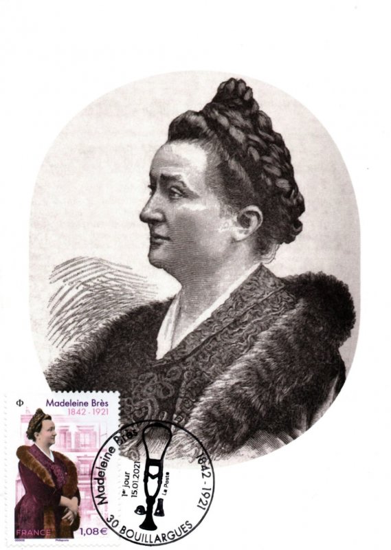 | Description | Émission d'un timbre à l’effigie de Madeleine Brès, première femme française à obtenir le diplôme de docteur en médecine, née dans le Gard. |