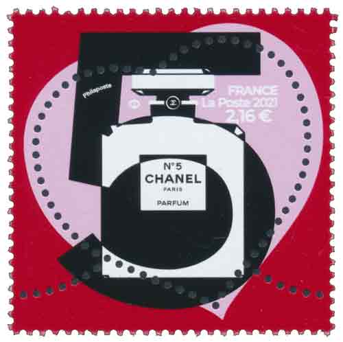 | Commentaire | Visuel : superposés dans un clair-obscur cinématographique, le 5, chiffre porte-bonheur de Gabrielle Chanel, et le flacon du parfum, reconnaissable entre tous, s’unissent dans un cœur symbole de l’amour éternel. Intimement lié au N°5, le rouge, dont Gabrielle Chanel disait qu’il était la couleur de la vie, est omniprésent : tantôt enveloppant un cœur rose pour un effet poétique, tantôt contrastant avec un cadre orange, dans un jeu de couleurs pop. En savoir plus sur Wikipédia : Chanel En savoir plus sur Wikipédia : Coco Chanel |