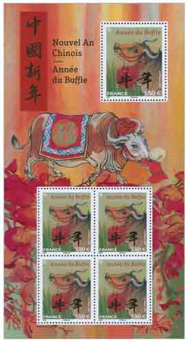 | Description | Deux blocs de 5 timbres consacrés à «l’Année du Buffle». |
