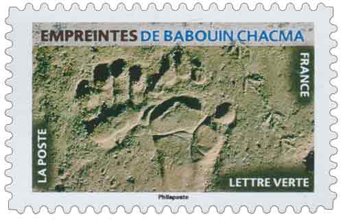 | Commentaire | Empreintes de babouin chacma © Martin Harvey / Biosphoto Le babouin chacma (Papio ursinus) est endémique de l’Afrique Australe, c'est un primate de la famille des Cercopithécidés. Il est proche de l'humain, avec ses pattes identiques à nos mains |