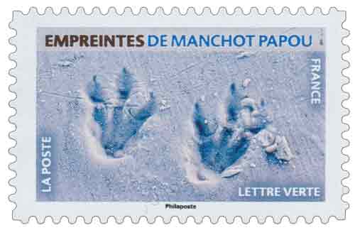 | Commentaire | Empreintes de manchot papou © Sylvain Cordier / Biosphoto Le Manchot papou (Pygoscelis papua) ou Papou, est une espèce d'oiseaux de la famille des Spheniscidae (oiseaux marins). C'est une espèce inapte au vol : les ailes servent de nageoires. Les pattes du manchot papou sont entre le rose et l'orange de type saumon. Sur terre, il marche en se balançant d'un côté à l'autre, les ailes à demi-écartées. L'empreinte palmée a une forme triangulaire allongée dont l'absence de trace du pouce arrondit le sommet. Les griffes sont marquées. |