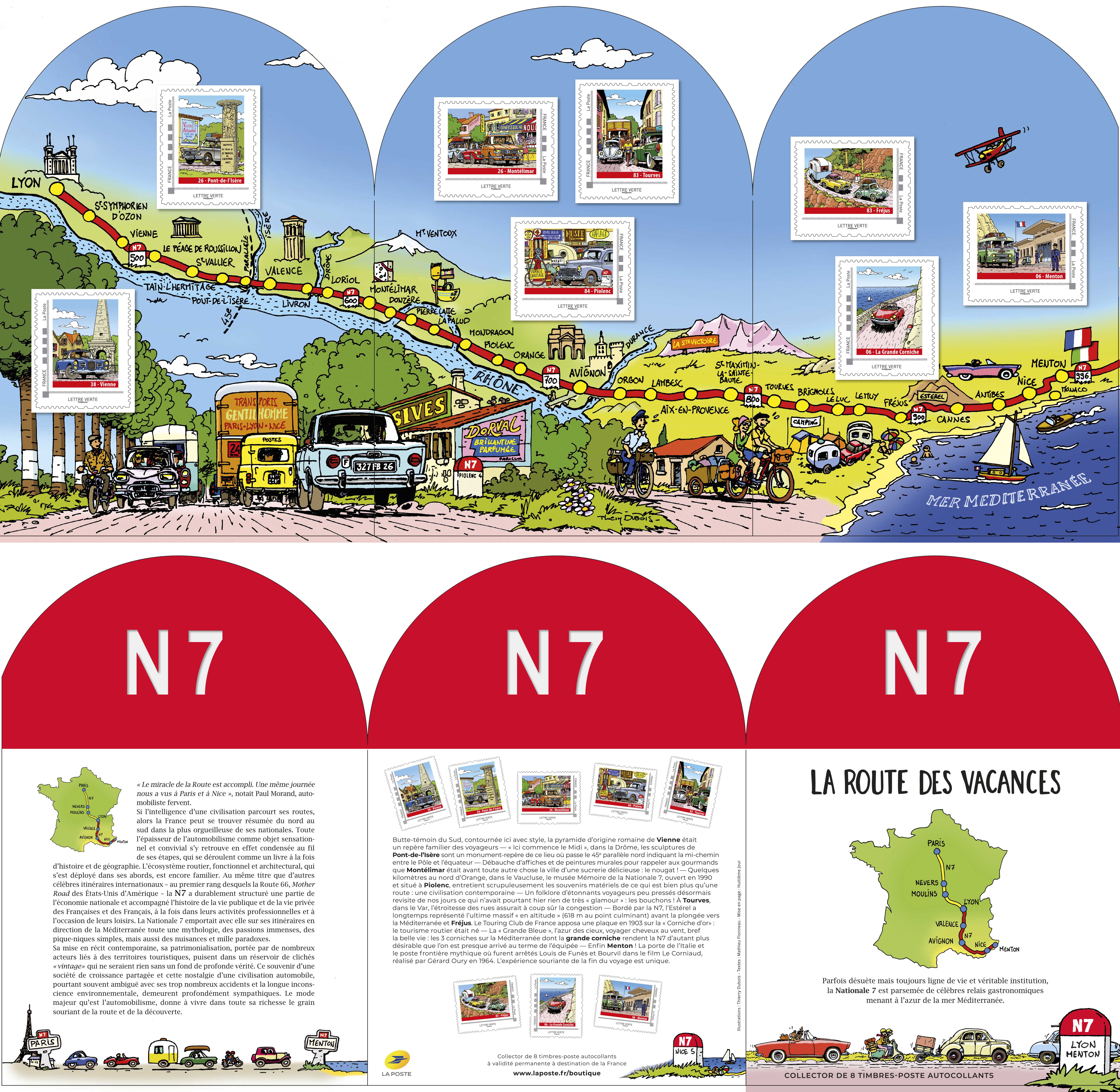 | Commentaire | C'est en 1824 que la Route impériale n°8, appellation depuis Napoléon, devient la Route royale n°7, soit un itinéraire allant de Paris à la ville d'Antibes ; et en Italie, par Nice. C'est sous la Troisième République (du 4 sept.1870 au 10 juil.1940) en pleine révolution industrielle, qu'elle devient la "Route nationale 7". C'est la fameuse "Route des vacances" la "N7" (ou "Route Bleue") est un grand témoin de l'histoire, depuis les Romains, de nombreux tronçons de cette voie ont été traversés par les seigneurs, les rois où les armées. Elle a traversé les événements et incarne aujourd'hui un haut lieu symbolique pour l'automobile. Depuis la Porte d'Italie jusqu'à Menton, elle s'étire et serpente sur 1000 km. En savoir plus sur Wikipédia : Route national 7 Dépliant 3 volets, format ouvert 445 x 210 mm et fermé 150 x 210 mm |