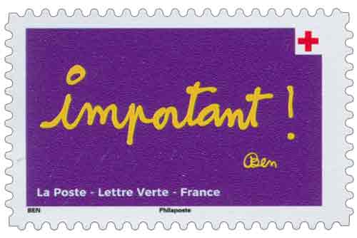 | Description | Provenant du carnet de 10 timbres-poste illustrés par des mots-images de BEN plein d’espoir, d’engagement et générosité. |