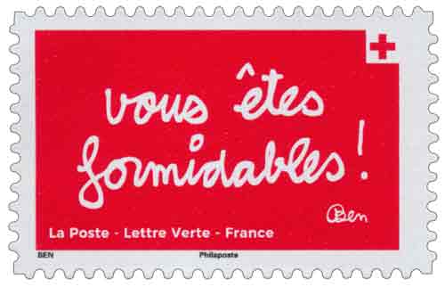 | Description | Provenant du carnet de 10 timbres-poste illustrés par des mots-images de BEN plein d’espoir, d’engagement et générosité. |