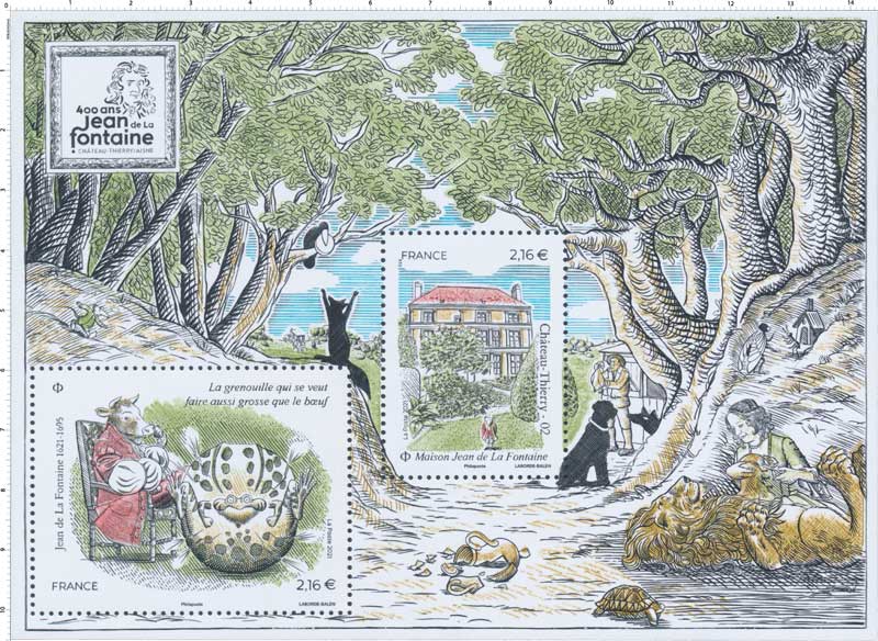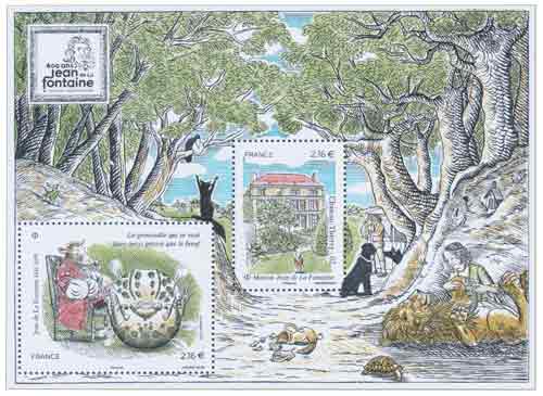 | Description | Émission d'un bloc de 2 timbres pour les 400 ans de la naissance du célèbre poète La Fontaine |