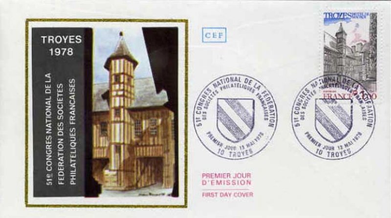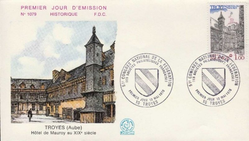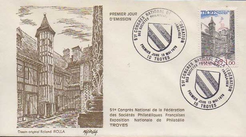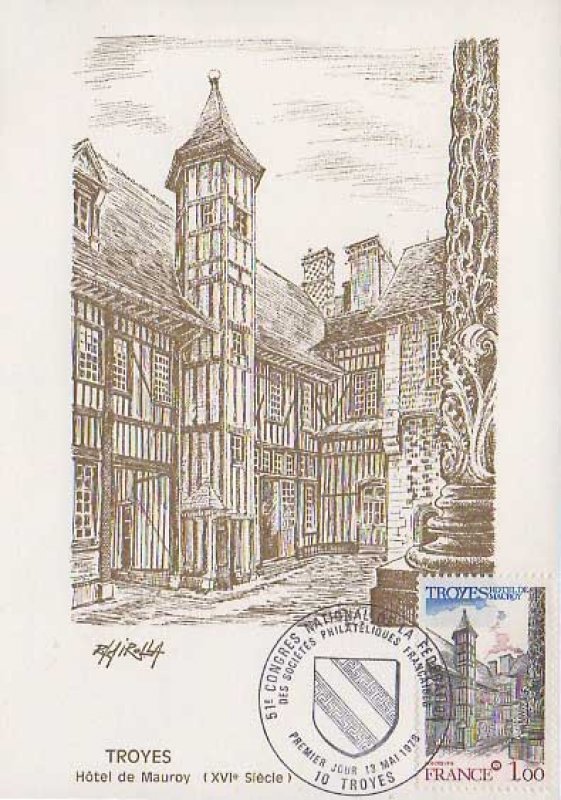 | Description | 51e congrès national de la Fédération des sociétés philatéliques françaises à Troyes. Représentation de l'hôtel de Mauroy |