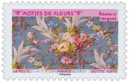 | Description | Provenant du carnet de 12 timbres-poste illustré de fleurs imprimées sur tissus du musée d'Impression sur Étoffes de Mulhouse . |
