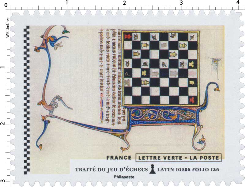 | Commentaire | Traité de jeu d’échecs - manuscrit en latin 10286 - Folio 126 V 20 x 28 cm - © BnF, Dist. RMN-Grand Palais - © image BnF Un extrait du manuel de Charles Ier d'Orléans (1394-1465) d'après le traité en latin de Nicolaus de Nicolai (Nicolas de Nicolaï), "De ludo scacchorum, tabularum et marellarum" (Jeu d'échecs, de tables et de mérelles) traduit par Jean de Vignay (dominicain lombard), sous le titre : Livre des échecs moralisés (fin XIIIe siècle), La littérature dite "des problèmes d'échecs" prend son essor dès le XIIIe siècle. Un des premiers exemples en est un manuscrit florentin appelé "Bonus socius", recueil qui associe parties d'échecs, de tables et de marelles et dont parurent à la fin du XIVe siècle à la fois une adaptation française, probablement due à un clerc originaire du Hainaut, et une adaptation latine rédigée par Nicolas de Nicolaï, sans doute un juriste lombard. En savoir plus sur Wikipédia : jeux d'échecs |