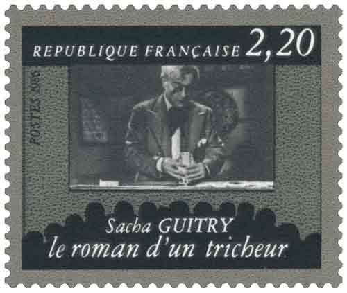 | Description | Cinquantenaire de la cinémathèque française. Sacha Guitry (1885-1957), comédien, dramaturge et metteur en scène, né à Saint-Pétersbourg et mort à Paris. Illustration " le roman d'un tricheur" |