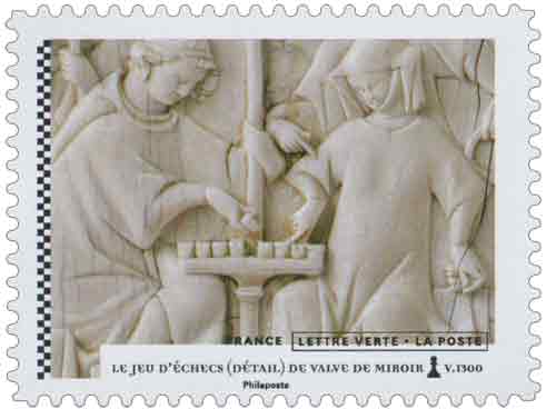 | Commentaire | Jeu d’échecs - détail d'une valve de miroir - v.1300 © RMN-Grand Palais (musée du Louvre) – © Daniel Arnaudet - Période de Philippe IV le Bel (1285-1314) - Musée du Louvre, Département des Objets d'art du Moyen Age, de la Renaissance et des temps modernes. Les ivoiriers gothiques ont livré de nombreuses pièces religieuses mais également des œuvres profanes, telles les valves de boîtes à miroir. Les plaquettes étaient sculptées de sujets courtois ou de scènes évoquant des épisodes de romans à la mode. La valve de miroir, cantonnée de quatre chimères. En savoir plus sur Wikipédia : jeux d'échecs |
