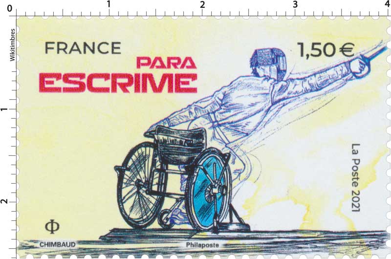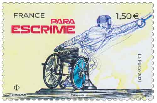 | Commentaire | Para-escrime (ou escrime handisport depuis 1960) : l’escrime paralympique se pratique sur un fauteuil roulant spécifique fabriqué sur mesures dans les trois armes conventionnelles : l’épée, le fleuret et le sabre. L’escrime en fauteuil est un combat rapproché, contrairement à l’escrime debout. Lors de l’attaque, l’action est déclenchée par l’allongement du bras d’arme, tandis que le bras arrière contrôle l’accélération et la poussée. En France, ce sport dépend de la Fédération Française Handisport. |