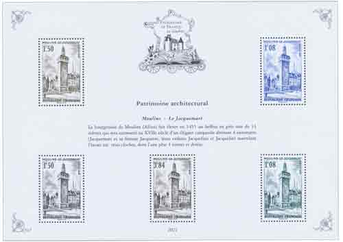 | Commentaire | 10 feuillets retraçant les 10 thèmes de notre patrimoine (arts et lettres, aviation, Croix-Rouge française, la France de nos régions,histoire postale, patrimoine architectural, personnages de l’histoire de France, sciences et techniques, sports et loisirs, et transports).