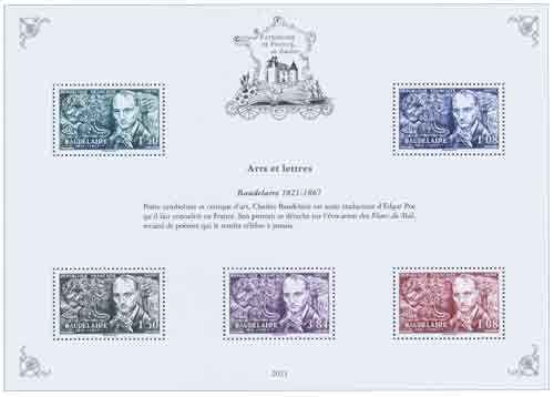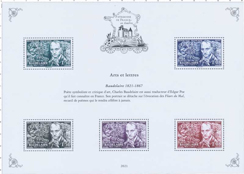 Valeurs faciales du feuillet : 3,84 € au centre, 1,50 € pour les deux timbres-poste à gauche et 1,08 € pour les deux restants, soit 9 € au total