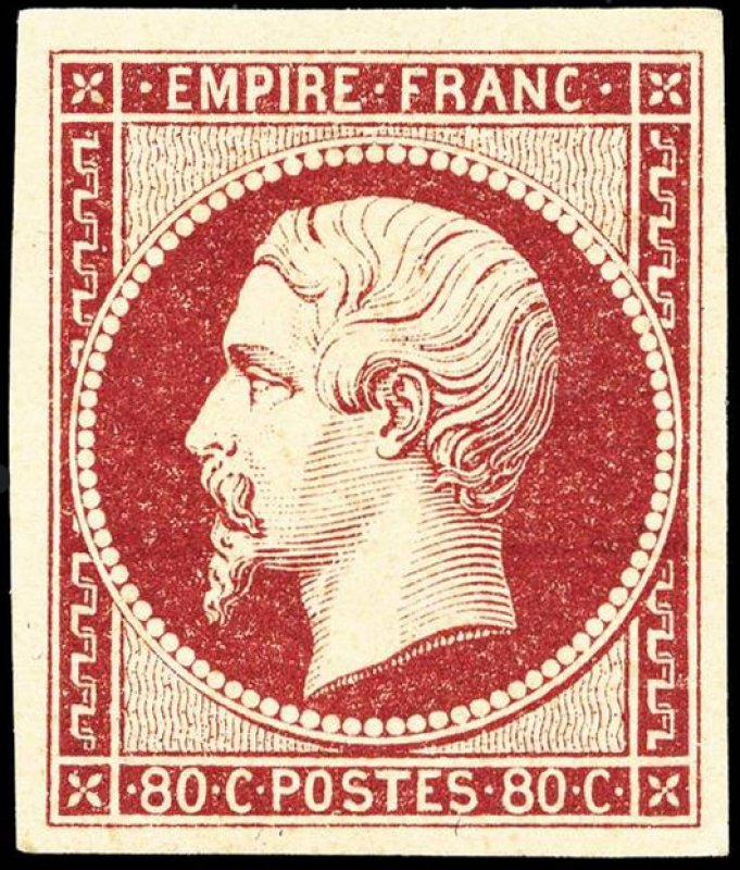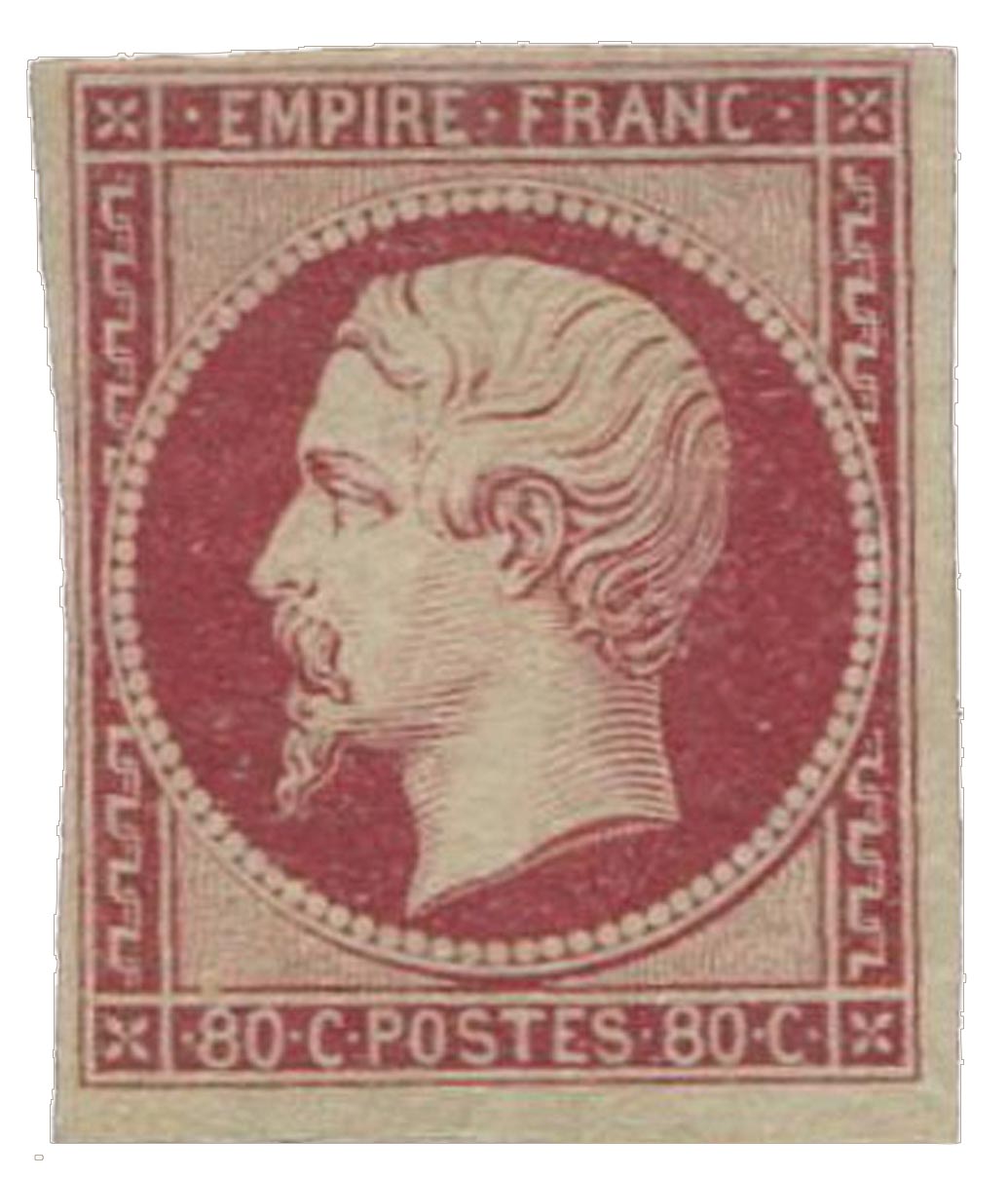 | Commentaire | Napoléon III - Empire Franc. lettres pour l'étranger. Retrait 1860 Émis en décembre 1854, le 80 centimes carmin inaugure la nouvelle valeur élevée rendue nécessaire par la réforme tarifaire du 1er juillet 1854, qui abaisse plusieurs affranchissements intérieurs et rend inutile le 1 franc carmin. Ce 80 c reprend exactement la couleur et l’aspect du 1 F, au point que les premiers tirages présentent des tons indistinguables de ceux de l’ancienne valeur. Le timbre appartient à la série des émissions impériales non dentelées dont la légende « EMPIRE FRANC » remplace depuis janvier 1853 l’ancienne mention « REPUB FRANC ». Le poinçon utilisé est celui de l’émission Présidence, retouché par Jean-Jacques Barre, notamment par la suppression de son initiale « B » sous le cou de l’effigie. Le dessin présente le profil gauche de Napoléon III dans le médaillon ornemental caractéristique de la période. Imprimé en typographie, non dentelé, le 80 c est destiné aux affranchissements lourds ou aux correspondances de valeur importante, y compris vers l’étranger, selon les barèmes en vigueur après la réforme. Sa création répond à la nécessité de remplacer le 1 F devenu surdimensionné par rapport aux nouveaux tarifs, ce qui explique que cette nouvelle faciale repose sur la même logique d’usage tout en étant mieux alignée avec les besoins courants. Les oblitérations habituelles sont le losange Petits Chiffres, généralisé dans toute la France depuis 1852, et l’étoile muette pour le bureau central de Paris. Le n°17A marque ainsi l’ultime grande valeur non dentelée de la première phase impériale, avant l’arrivée des émissions dentelées à partir de 1862. |