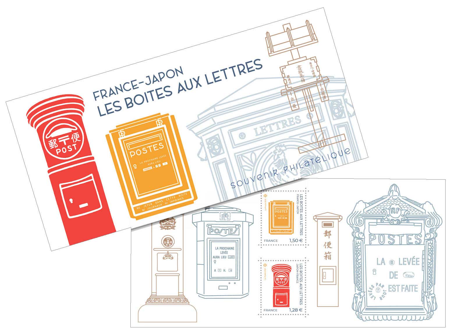 | Description | Dans le cadre de la Saison de la France au Japon, les Postes françaises et japonaises émettent chacune un bloc feuillet de timbres illustré par des boîtes aux lettres françaises et japonaises |