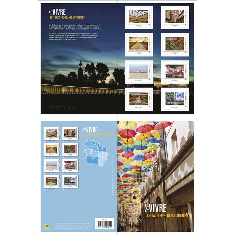 Timbre : 2021 Vivre autrement - Hauts de France Mesures Format d'imp 143 x 210 mm Dents incluses 143 x 210 mm Forme vertical Phosphore 1 barre à droite Impression Offset Complément xxxxx Couleur quadrichromie Valeur 13 € Dentelure Spéciale MTAM Emis en bloc-feuillet de 8 TP Quantité 10 000 Auteurs Dessinateur - Graveur - Mise en page - Mentions Création pôle régional de communication Lille des Hauts de France Numéros & Dates N° Philatelix - N° Michel - Date d'émission 30/08/2021 Date de retrait - Classements Groupe Collector 2021 Catégorie Collectors MTAM Familles régions sites et paysages patrimoine Usage Lettre verte 20 g Régions Hauts de France Départements - Description Émission d'un collector sur les Hauts de France Commentaire - Mes timbres & notes personnelles www.wikitimbres.fr