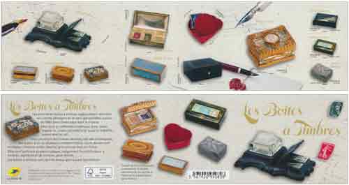 | Description | Émission d'un carnet de timbres de tous formats : carré, ovale, petit et grand rectangle, cœur, hexagonal. Illustrés par des boîtes à timbres. |