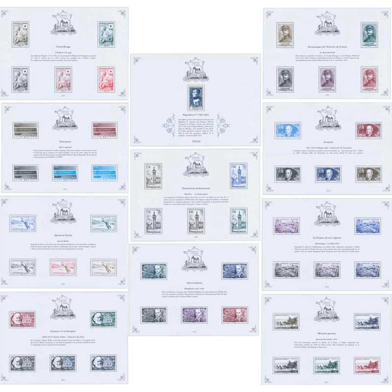 | Commentaire | Valeurs faciales : 3,84 € au centre 1,50 € pour les 2 timbres de gauche et 1,08€ pour les 2 timbres de droite soit un total de 9,00 € par feuillet.