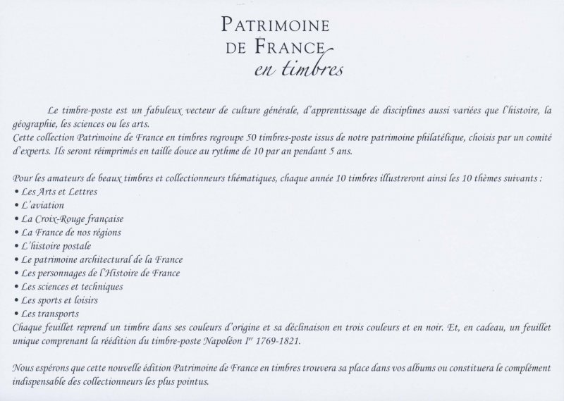 | Description | 3e émission (sur 5) - suite de la série les trésors de la philatélie |
