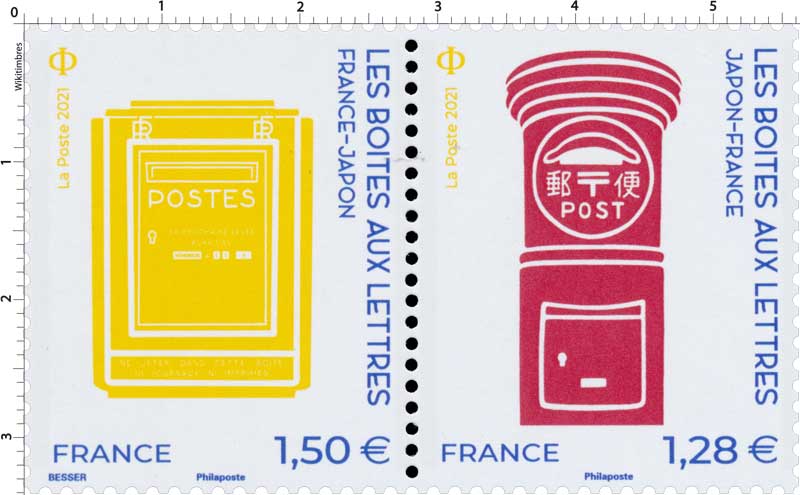 | Description | Dans le cadre de la Saison de la France au Japon, les Postes française et japonaise émettent chacune un bloc feuillet de timbres illustré par des boîtes aux lettres françaises et japonaises |