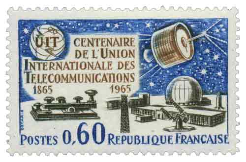 Émis en 1965 pour commémorer le centenaire de la création de l’Union internationale des télécommunications, ce timbre de France rappelle l’acte fondateur signé à Paris le 17 mai 1865, lorsque vingt États décidèrent d’harmoniser et d’organiser les échanges télégraphiques au-delà des frontières nationales, marquant une étape décisive dans l’histoire des communications modernes à une époque où la télégraphie électrique transformait radicalement la notion de distance et de temps ; le sujet s’inscrit dans le contexte d’un XIXᵉ siècle industriel et scientifique qui voit les États passer d’accords bilatéraux à une régulation multilatérale, prélude à la normalisation internationale des réseaux, des tarifs et des priorités de transmission, puis à l’intégration progressive de nouveaux moyens techniques comme le téléphone et la radiotélégraphie ; en 1965, alors que les télécommunications s’étendent désormais aux satellites artificiels et que le centre de Pleumeur-Bodou symbolise l’entrée de la France dans l’ère spatiale des transmissions, ce timbre associe héritage du télégraphe Morse et modernité technologique pour souligner la continuité d’une ambition née au XIXᵉ siècle, celle de faciliter l’échange des idées entre les peuples, dimension à la fois technique, diplomatique et symbolique qui fonde encore la mission de l’U.I.T. un siècle après sa création.