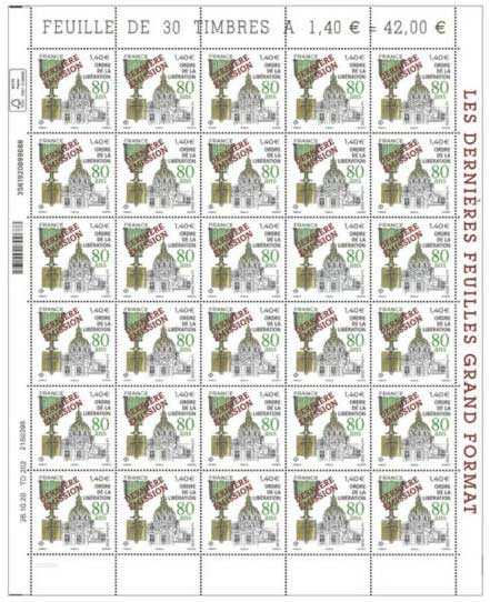 | Commentaire | Vendu en feuilles (indivisibles) surcharge sur la feuille émise le 17/11/2020 En savoir plus sur Wiikipédia : Ordre de la Libération |