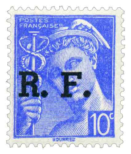 | Description | Type Mercure. Timbre de 1942 surcharge R.F. |