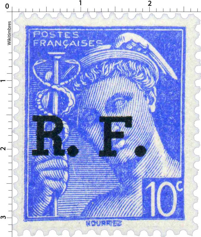 | Description | Type Mercure. Timbre de 1942 surcharge R.F. |
