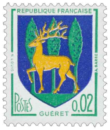 | Commentaire | Guéret, petite ville de la Creuse, cache dans son blason toute une histoire plus dense qu’il n’y paraît. En 1964, la Poste décide de lui rendre hommage avec un timbre qui met en lumière ce symbole vieux de plusieurs siècles — et un brin mystérieux. Le blason ? Une forêt verte sur fond bleu (officiellement "d’azur à la forêt de sinople"), sur laquelle trottine un cerf doré. Cette image, dite "parlante", évoque directement le vieux mot "guéret", qui désignait autrefois une lande ou un terrain en friche. On sait que Guéret est née au VIIᵉ siècle, dans l'ombre de l'abbaye de Saint-Pardoux, et qu’elle reçut ses franchises en 1406 des mains de Jacques II de Bourbon. Quelques années plus tard, en 1424, la ville achète la forêt de Chabrières — immense et peuplée de cerfs —, ce qui expliquerait pourquoi l’animal trône fièrement sur ses armoiries. Un petit détail amusant : le blason de Guéret est dit "à enquerre", ce qui en héraldique signifie qu'il ne respecte pas tout à fait les règles de contraste entre couleurs et métaux. Normalement, on ne superpose pas couleur sur couleur, mais par courtoisie, on préfère dire pudiquement que les pièces sont "au naturel"… Un peu comme un gentil clin d'œil médiéval pour ne froisser personne. Si Guéret a vu passer de grands noms — Lusignan, Bourbon, Philippe le Bel et même François Ier —, son blason, lui, n’a jamais été encombré d’armoiries princières. Il reste simple, fidèle à ses bois et à ses cerfs, une sorte de capsule du temps rappelant qu’au cœur de la France, la terre, la nature, et l’histoire se tiennent encore la main. WikiTimbres |