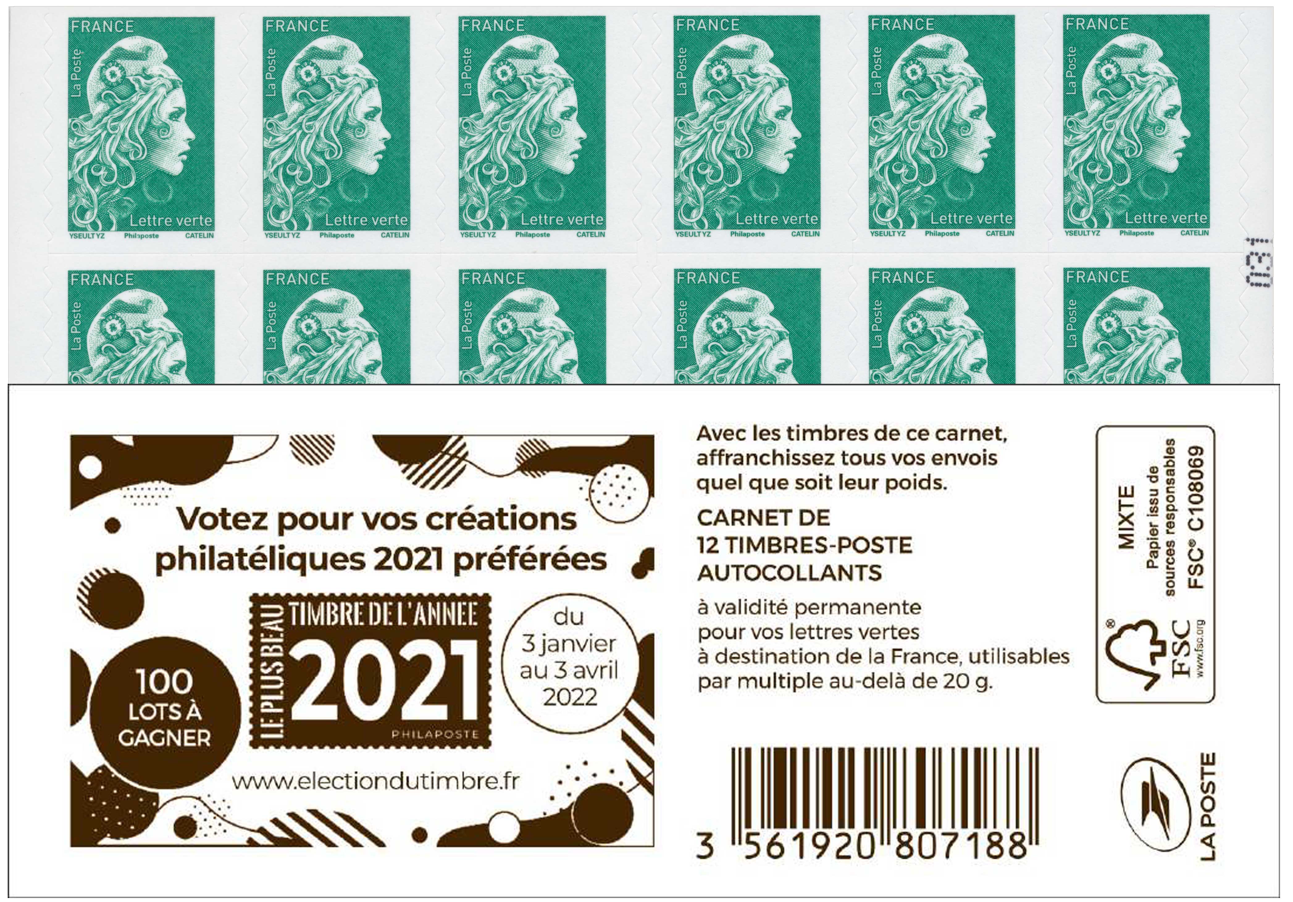 | Description | CARNET MARIANNE de 12 timbres lettre verte |
