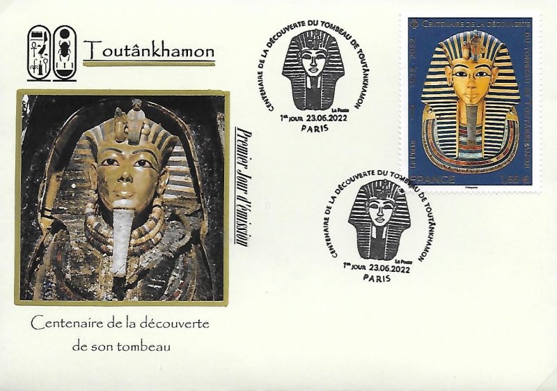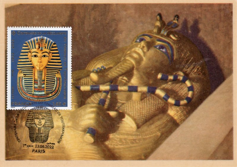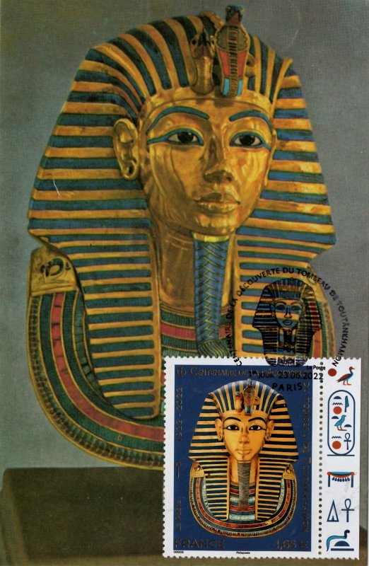 | Description | Émission d'un timbre qui célèbre le 100e anniversaire de la découverte du tombeau de Toutankhamon, le 11e pharaon de la XVIIIe dynastie, par Howard Carter. |