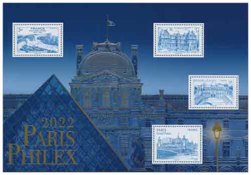 | Description | Bloc doré du salon Paris-Philex 2022, réimpression de 4 timbres |